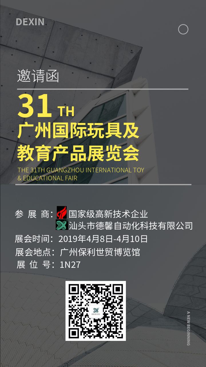 第31屆廣州國(guó)際玩具展,德馨自動(dòng)化科技誠(chéng)邀您的光臨與指導(dǎo)!